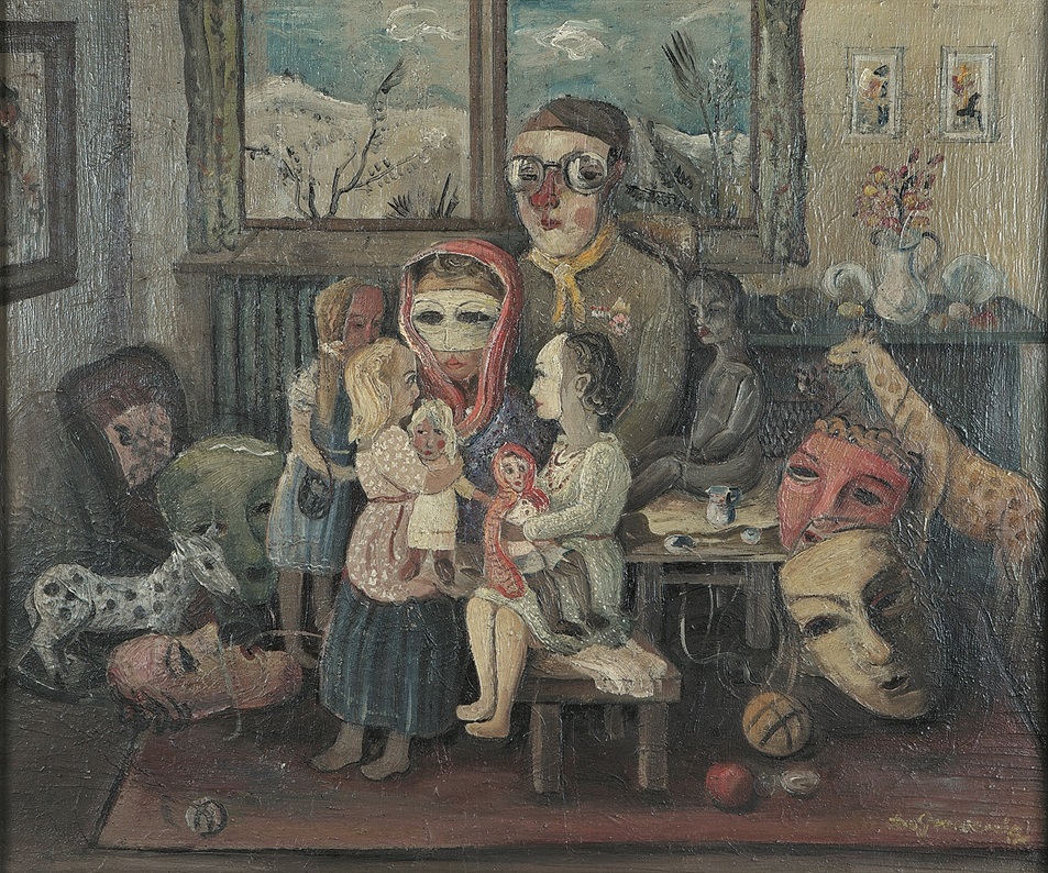 Maskerade, Öl auf Sperrholz (1948) In Besitz des Saarlandmuseums Saarbrücken - Moderne GalerieStiftung Saarländischer Kulturbesitz